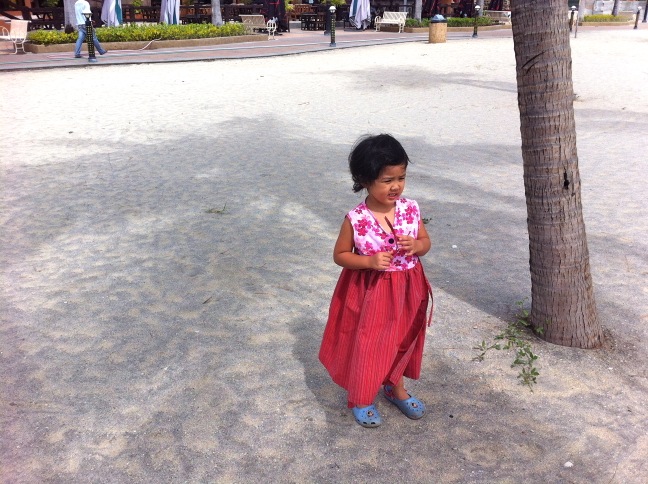 Pasir di pantai sini putih, tapi gak begitu mengundang buat dinikmati (karena panas) sementara air lautnya tidak kelihatan bersih-bersih amat. Good view sih, but not so inviting heheh.. I guess that’s the big highlight of the day, sisa hari kami tetap lebih banyak di rumah kakakku saja.