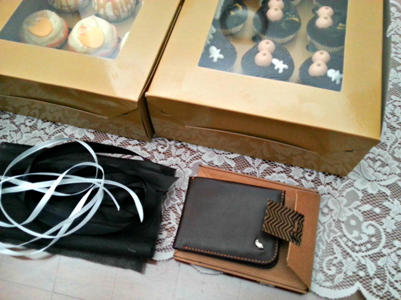 Dua kotak di atas itu, masing-masing isinya selusin cupcake. Lalu untuk hadiahnya ini, dompet kulit dari Bellroy yang saya beli di websitenya langsung. Si dompet ini sudah dibeli beberapa bulan sebelumnya (dan sempat tertahan di imigrasi/bea cukai bandara dong!) tapi untung banget meski pengirimannya cukup lama, bisa tiba sebelum ulang tahun mas pacar. Hehe senang dong!