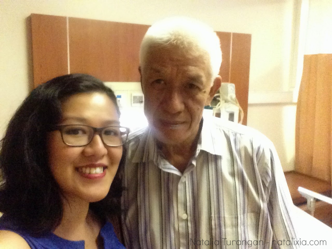 Saya bersama ayah, di ruang tempat rawat inap, hari pertama masuk rumah sakit. Ayah masih bisa jalan-jalan di dalam komplek RSKD :)