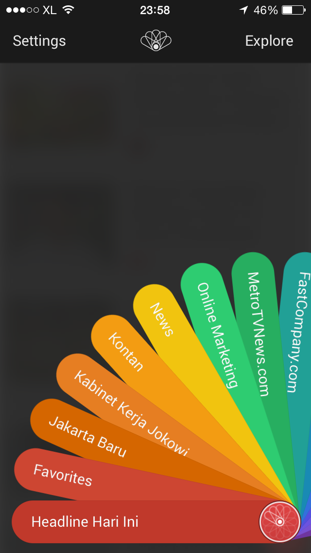 *Ini screenshot dari aplikasi Kurio di ponsel saya. Kamu jadi bisa lihat kanal apa saja sih yang jadi favorit saya :) Susunan warnanya memang tidak bisa diubah, tapi topik-topiknya bisa tuh :D