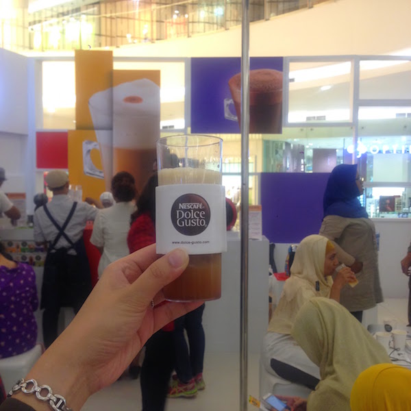 Waktu bulan April lalu, sebenarnya saya sempat datang ke acara Dolce Gusto di atrium Senayan City sekalian gathering bersama teman-teman blogger lain. Coba saya tahu bakal dibelikan mesinnya, mungkin saya sudah borong beli kapsulnya tuh :))) Nah saya sempat coba dua macam minuman di sana, yaitu Peach Beer Wannabe dan Peach Tea (kalo gak salah), enak-enak dan segar deh! Jangan salah ya, kedua minuman tadi penyajiannya dalam kondisi dingin dan diberi es tuh, makanya jelas segar. Peach Beer Wannabe itu sendiri rasanya campuran antara Peach Tea dan Espresso (seperti saya intip dari blog Chika ini) – buat yang gak gitu suka kopi, ini enak deh soalnya rasa kopinya tidak dominan, bercampur dengan segarnya rasa peach! :D